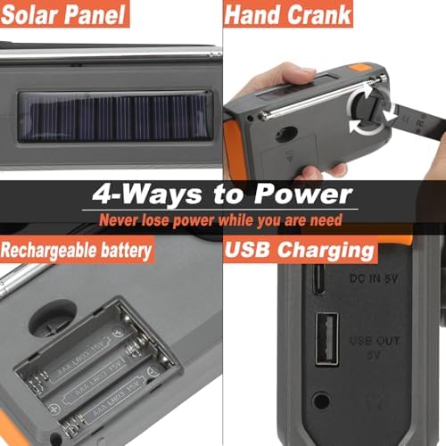 - 【Best After-Sales Service】Package includes: 1*Emergency Hand Crank Radio Radio, 1*User Manual, 1*USB-C Cable.Over the years, our bettery powered radio have assisted countless U.S. citizens during hurricane, tornado, and blizzard seasons, such as Dorian, Harvey, Irma, and others. Our radios come with a 24-month wa-rranty guarantee. If you're not satisfied with your NOAA emergency weather radio, we provide a quick refund upon request. Our customer service is available 24 hours to support you