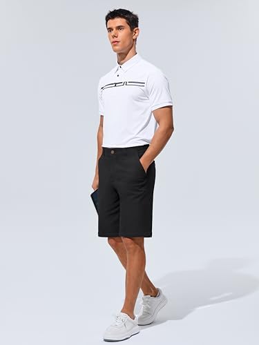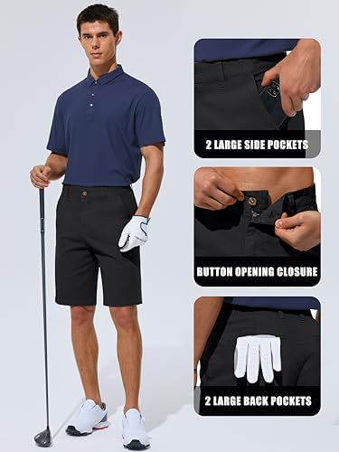 Men's Golf Bermuda Shorts Casual Baggy Chino Stretch Flat Front Shorts with Pockets Outdoor Walking Hiking(Black, 34)