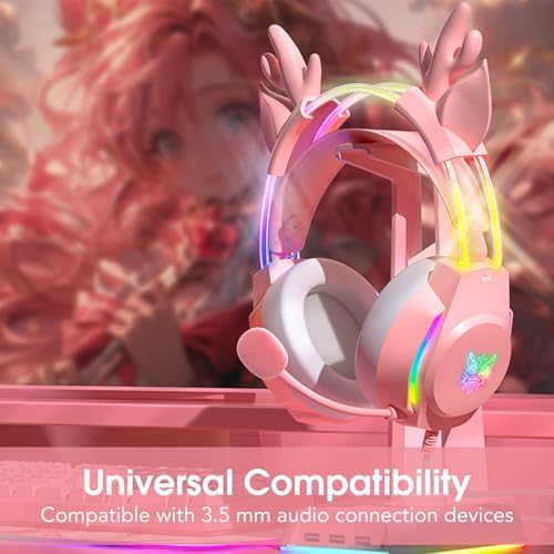 - 【Cute Appearance】The deer ears are removable, you can decide whether to wear them or not. Come in pink color appearance with RGB lights on the ear shells, the gaming headset is a wonderful gift for kids, young girls, wife, female friends.