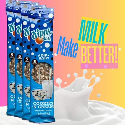 - Includes 4 packs of Dippin’ Dots Flavored Milk Straws (Cookies N’ Cream flavor) - each pack contains 5 straws. That’s 20 fun and flavorful straws to make your milk extra tasty!