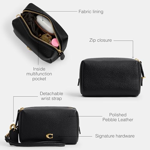 Elevate your everyday. Stash your everyday cosmetics in this cute little leather pouch. The best kind of mix up. This rich, mixed leather design combines refined calf leather with our signature canvas - for a perfectly iconic Coach makeup bag for women.