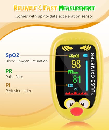 - 【Kid-Friendly Design with Fun Look】 Featuring a cute cartoon design and a snug silicone chamber ideal for smaller fingers, this device adds a touch of fun to casual wellness tracking.