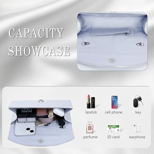 Larcenciel Metallic Patent Leather Clutch Purses for Women, Fashion Curved Flap Envelope Evening Handbags w/Chain Party Bags
