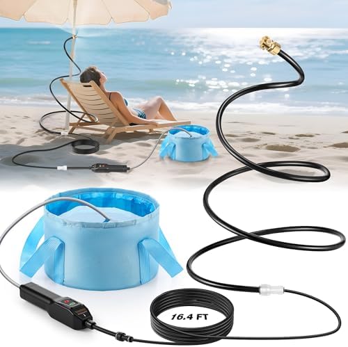 - [With water pump · Portable outdoor spray system] The portable outdoor spray system with water pump truly realizes "cooling down wherever you go". Built in rechargeable electric pump, no need to connect to a faucet, can be carried to the beach, camping grounds, golf carts, picnic places and other places, and easily enjoy the cool spray. Attached with a 15L large capacity water bag to meet the needs of long term outdoor cooling
