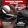 - THINNING SHEARS FOR LAYERED STYLES: Included thinning shears for hair cutting feature 31-tooth blades (0.3mm serration) to create seamless gradients. Offset handle design reduces wrist fatigue during 8hr+ salon sessions. Perfect for blending, texturizing, or bulk removal without over-thinning.