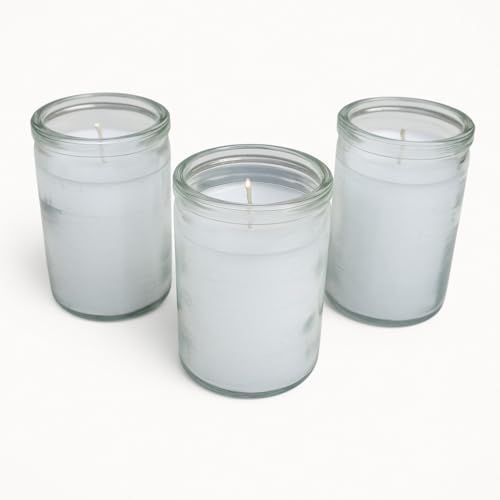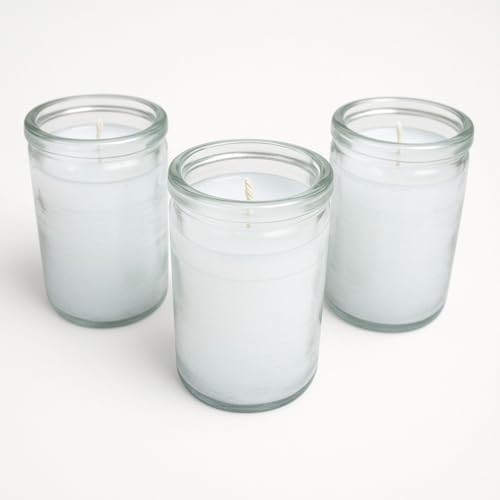 3 Pack White Spiritual Candles in 3 Inch Clear Glass – Velas Unscented Veladoras for Prayer, Meditation, Cleansing & Protection