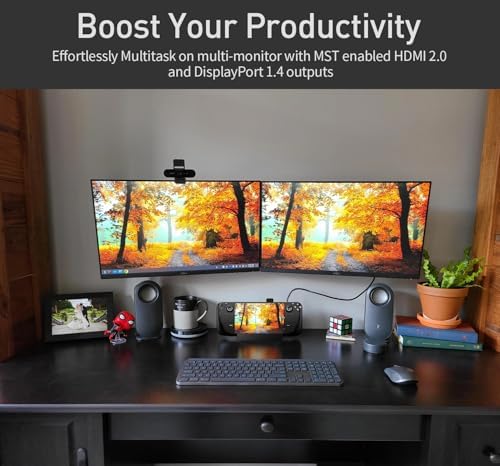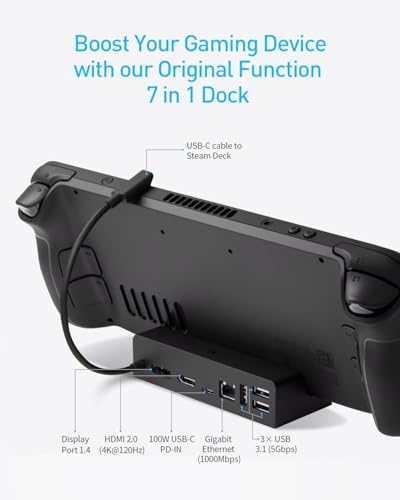Docking Station for Steam Deck/ROG Ally/Legion Go/MSI Claw - MST and FreeSync FUNC - 7 in 1 USB C Dock Hub with HDMI 4K@120Hz, DisplayPort, Gigabit Ethernet, 3 USB A 3.1 and 100W PD