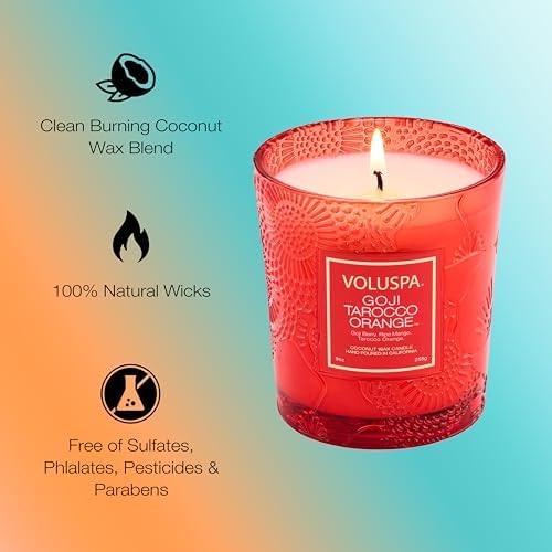 Voluspa Limited Edition Goji Tarocco Orange Classic Candle, 9 oz, 60 Hour Burn Time, Coconut Wax for Clean Burning, Handcrafted in The USA