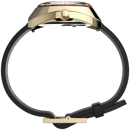 Timex Q Men's 1972 Reissue 43mm Watch – Gold-Tone Case Burgundy Dial with Black Leather Strap