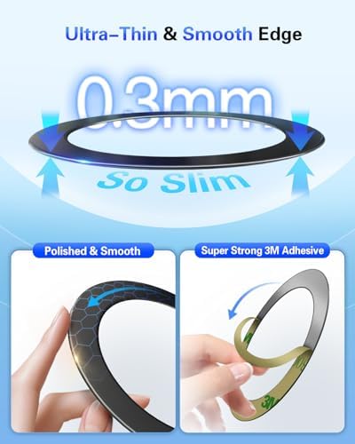 - Light, Slim, Safe: The 4pcs ultra-thin round mag safe metal ring is made of premium metal, only 0.3mm(0.01") thick & 0.1oz weight, avoiding adding bulk of phone. The edges are rounded and smooth, and the 2.5D curve design is comfortable to hold without scratching your fingers. It is durable and rust-free, combining durability and beauty. The multi-piece black & white can be adapted to different case colors ensure your long-term use