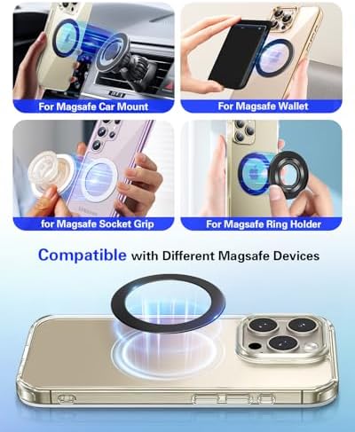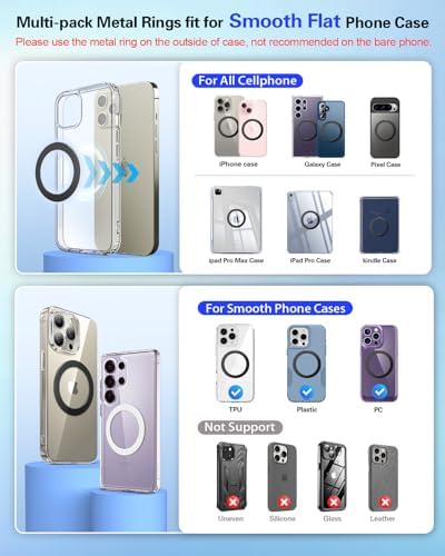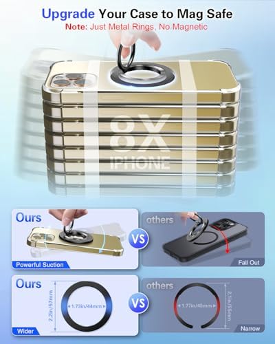 - Upgrade to Mag Safe: The universal metal ring sticker upgrades your regular phone case to mag-safe compatible without replacing it. This extra strong mag safe converter ring is NO MAGNETIC but it can enhance the adsorption and alignment accuracy of all mag safe magnet accessories, ensuring that your cell phone is firmly locked to the magnetic device