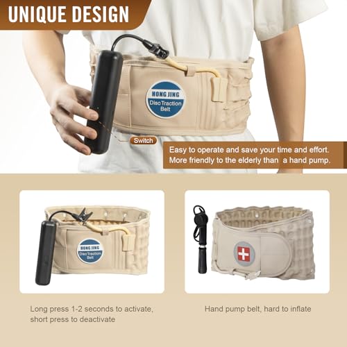HONGJING Electric Pump Decompression Belt for Lower Back Pain Relief, Inflatable Back Reliever Lumbar Support Brace, One Size Fits 29-49 Waist
