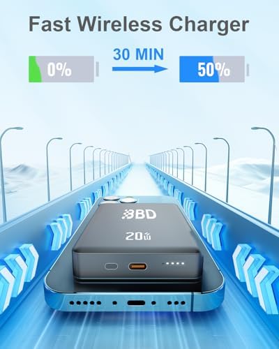 BBD Magsafe Portable Charger,10000mAh Magnetic Power Bank Fast Charging PD 20w with USB C Cable,Slim Magsafe Battery Pack Travel Essential,Wireless Power Bank for iphone 17/16/15/14/13/12 Series 1Pack