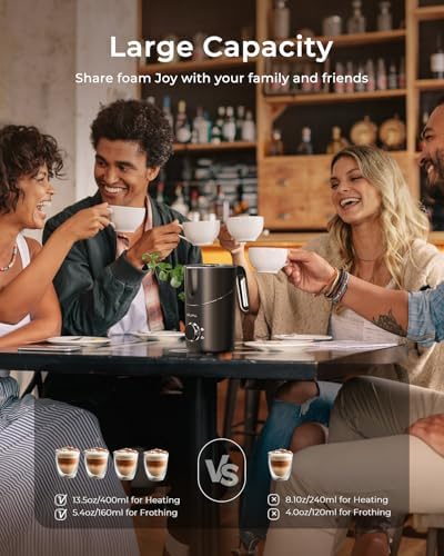 • 【Precise Temperature Control for Perfect Results】This automatic milk frother and steamer offers 3 temperature settings—normal, 60°C (140°F), and 80°C (176°F)—to customize your coffee milk frother experience. Advanced magnetic suspension technology spins at 3500 RPM, creating silky-smooth foam for lattes or frothy milk for hot chocolate. Whether you’re a milk foamer frother enthusiast or a milk warmer and frother novice, enjoy high-quality precision in every sip.