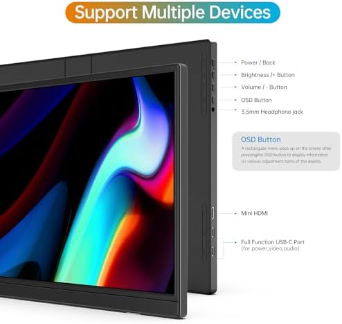- Double Type-C Port for Easy Connectivity: With two full-featured Type-C ports, this mini PC monitor allows for effortless Plug & Play setup. Just one USB Type-C cable powers both the display and video transmission. It’s compatible with devices supporting Thunderbolt 3.0 or USB 3.1 DP Alt-Mode, including laptops, phones, PCs, and gaming consoles.