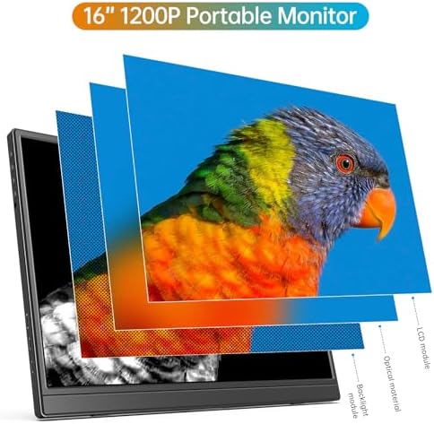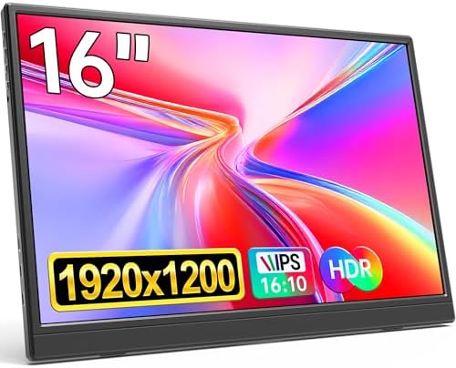 Portable Monitor 16.0inch FHD 1920 * 1200P USB C HDMI Ultra-Slim IPS Travel Display & Speakers, HDR Plug&Play, External Monitor for Laptop PC, Phone,Mac