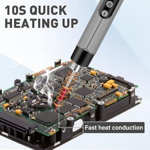 - Easy to Operate: Soldering iron kit just long press for 3 seconds to turn on/off. There is a layer of heat insulation on the surface to prevent the iron from burning your hands during operation. In addition, our cordless soldering iron comes with a led work light, making it easier for you to work more efficiently in low light