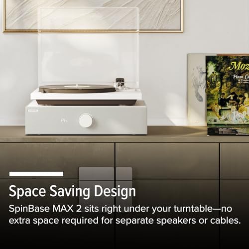 • SEAMLESS VINYL PLAYBACK: Enjoy easy setup with SpinBase MAX 2’s built-in phono preamp, eliminating extra equipment. Simply connect your turntable and experience clear, distortion-free sound, perfect for home theater and immersive vinyl playback in any room.