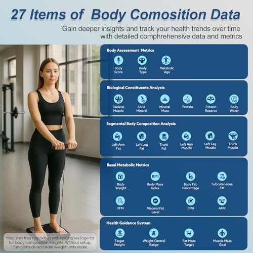 - App Setup Required: Utilize 8 advanced electrodes for clinical-grade analysis of body fat, muscle mass, BMI, bone mass, water percentage, and 22+ metrics (Requires free app setup with height/sex/age for full body composition insights. Without setup, functions as accurate weight-only scale)