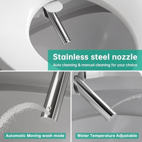 • All-in-One Eletric Toilet Bidet for Hygienic Cleaning – Features dual nozzles (feminine& rear wash) with oscillating/mobile spray, offering a gentle yet thorough clean for women, men, and kids—no toilet paper needed!