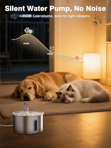- Hygienic 304 Stainless Steel - Our water fountain made with SUS 304 rust-proof stainless steel that resists scratches and is easy to clean (dishwasher safe), offering a safe and healthy water source and ensuring water stays fresh longer