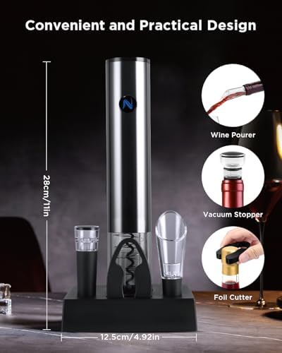 Electric Wine Opener with Charging Base - Perfect Christmas Wine Gift Set - Rechargeable Wine Bottle Opener with Aerator & Pourer, Vacuum Stopper, Foil Cutter