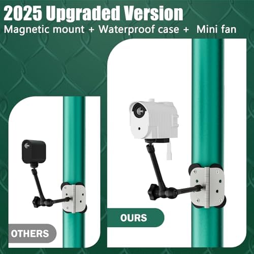 3-in-1 Magnetic Fence Mount with Shade for Mevo Start, Weatherproof Case with USB Fan Keep Mevo Start Cam from Overheating During Recording Baseball,Softball and Tennis Games