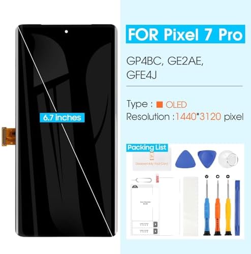 - for Google Pixel 7 Pro 5G LCD Screen Replacement: Our LCD screen replacement for Google Pixel 7 Pro 5G is only compatible with Google Pixel 7 Pro 5G GP4BC,GE2AE,GFE4J 6.7 inch models. Please ensure that your cellphone model number matches before placing an order.