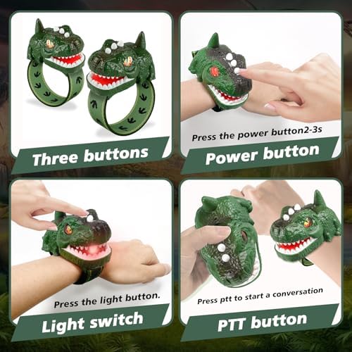 - Some Design That Sparks Imagination - Who says gadgets can’t be fun? With its playful T-Rex or Triceratops-inspired design and vibrant colors, this wearable walkie-talkie turns communication into a adventure. The lightweight, kid-friendly build features glowing LED mouth for added prehistoric flair, instantly transforming little explorers into dino-rangers ready to conquer their next quest.