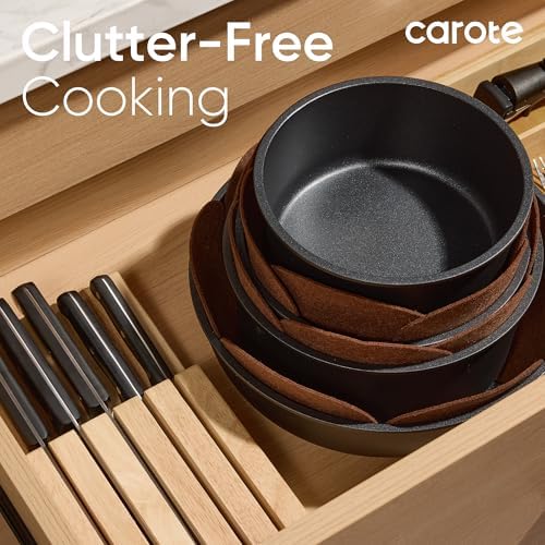 - Optimal storage and easy stacking with the handles off saves up to 70% more space of Carote detachable handle pots and pans set, keeping your kitchen neat and organized.