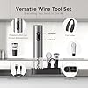 • 6-in-1 Complete Wine Opener Gift Set- This premium wine opener set includes an electric corkscrew, foil cutter, aerator pourer, vacuum stopper, USB-C charging cable, and a sleek storage base (not charging base). Keep all your wine accessories organized in one stylish kit