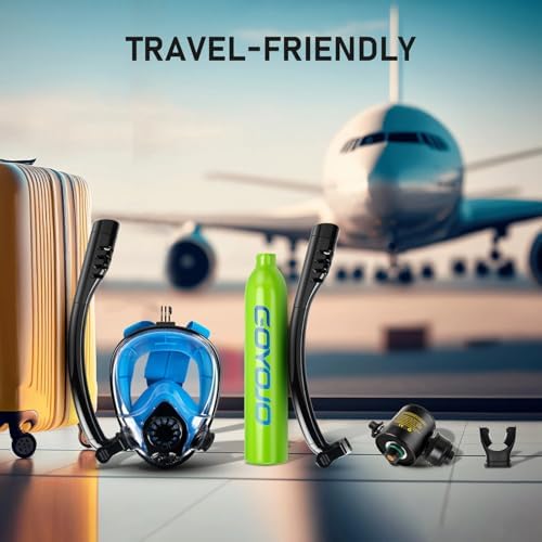 - 🤿 2-in-1 Versatility: Tank + Mask or Separate Use Use the 0.5L mini scuba tank alone for shallow diving, pool training, or emergency backup (5-8 min air supply). Pair it with the anti-fog, HD full-face snorkel mask for seamless surface exploration or underwater adventures.