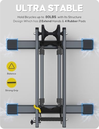 - No-Tools Installation & Compact Design: This bike stand features a dual-pole spring-arm mechanism that automatically expands when a bike is pushed in. Designed for indoor bike parking. Compatible with road bikes, mountain bikes, cyclocross bike, hybrid bike and more, it’s a practical solution for organized storage.
