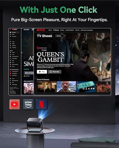 - [Built-in Smart TV OS with Officially Licensed Streaming Apps]: This all-in-one video projector comes with a built-in Linux system, Officially licensed by Netflix, it overcomes HDCP restrictions to ensure smooth playback without black screens, even with protected content. With one-click access to Netflix, Prime Video , YouTube and over 1.00 million videos directly without the need for external devices. This smart projector has Theater-Level Sound Get lost in the sound with dual 20W speakers, Dolby-certified clarity, and bass processing. From whispers to action scenes, experience every detail — ideal for movies, games, and outdoor movie nights