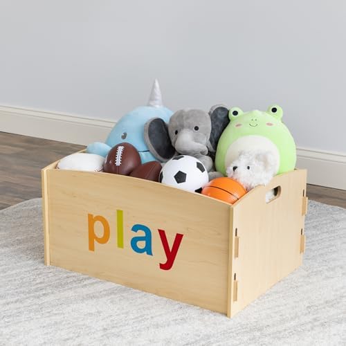 Humble Crew Toy Storage Chest for Kids, Natural Wood Finish, Large Toy Box with Cut-Out Handles & Rounded Corners, PLAY Design, for Toddlers & Preschoolers