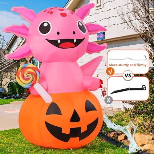 COMIN 5 FT Halloween Inflatables Salamander Pumpkin Outdoor Decorations Blow Up Yard with Built-in LEDs for Indoor Party Garden Lawn Decor