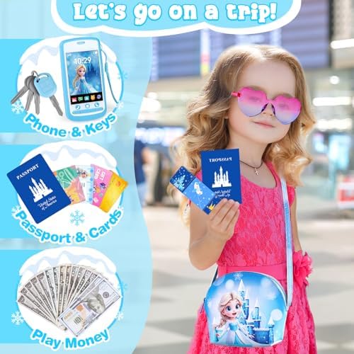 - Frozen Girl Purse for Little Princess - The crossbody purse is made of soft leather. Smooth zipper closure, no sharp edges or surfaces. This stylish and adorable purse is perfect for storing your little girl's toys. It can be used for daily carrying, storing items, traveling, shopping and other occasions. Kids can customize their cards by placing their photos on the cards and passport, our girls will immerse themselves in a wonderful trip of Frozen. Frozen toys can provid a rich role-playing experience that sparks children's creativity and imagination.