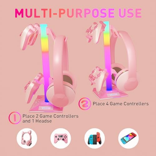 VCOM RGB Gaming Headphones Stand with 2 USB Ports, Pink Headset Stand with 10 Light Modes and Non-Slip Rubber, Suitable for PC Desk Accessories Gamers Gift(Pink)