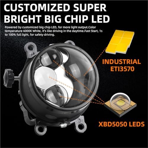 Product Description:Projector Lens Size: 3.0 inchInput Voltage: DC 9-16VProjector Lens Power: 110W/pairLuminous Flux: 50,000LM/pairColor Temperature Changeable: 6000K White, 5000K Warm White, 3500K YellowLight Source: Powerful LED ChipBeam Modes: Hi-Lo Beam+SpotlightLens: Triple convex curved HD GlassMaterial: Aviation 6063 AluminumWorking Temperature: -40~+85 centi degreeService Life: Over 50,000 hours.Fitment: Specific vehicles, and if your fog light with enough space, you can install it(modify maybe is needed).Does not contain instructions. Professional installation is highly recommended!Product Features:Projector Lens: Latest Triple convex curved optical lens, high low beam will pass through different parts of lens, improve the brightness of 30%.Super Bright: High bright LED with a excellent bright output.Lighting: Powerful high bright LED chips. can reached 800 Meters illuminations distance.Cooling System: Features a powerful cooling fan, with high quality ball bearings and a precisely engineered impeller. 40% Cooler than others.Solenoid Motor: Ensure heat dissipation effectively, expose more light through the lens, improved the lens performance.Interior Drivers: Digital control board built inside to protect the LEDs from voltage or current fluctuations, guarantee the efficient and stable lights output.Package Includes:2pcs x 3.0 inch Bi-LED Fog Light Projector LensFitment:Specific vehicles, and if your fog light with enough space, you can install it(modify maybe is needed).Compatible For Compatible FordCompatible For Focus 2004- ON( Not Compatible For SVT)Compatible For Focus C-MAX 2003-ONCompatible For Focus MK2 2004-2010Compatible For Focus MK3 2011-2015Compatible For Ecosport 2013-ONCompatible For Explorer 2011-2015Compatible For Fiesta 2006- ONCompatible For Fiesta