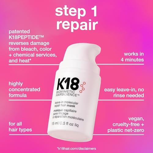 K18 Molecular Repair Minis Kit, Leave-In Molecular Hair Mask + Lightweight Repair Oil, Repairing Hair Duo to Strengthen + Smooth Frizz, Suitable for All Hair Types, Travel Size Kit