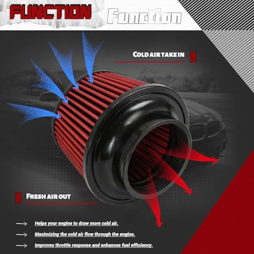 - FUNCTION: The air intake kit can help your engine to draw more cold air, improve throttle response and overall horsepower, and increase engine power output.