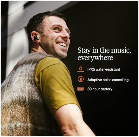 Cambridge Audio Melomania A100 Earbuds - in Ear True Wireless Headphones with Adaptive Active Noise Cancelling, aptX Lossless Bluetooth, Up to 39 Hour Battery Life with Charging Case - Black