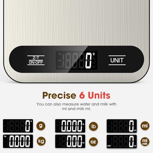 - 【Multifunction Unit】The food scale supports 6 unit conversions: g, kg, lb, oz, ml, milk ml. Includes 2 AAA batteries.