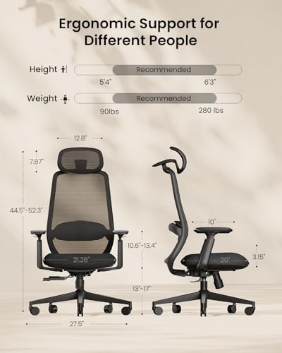 • Ergonomic Design, Healthy Office Work: Designed for modern professionals, the EC200 ergonomic chair combines comfort and health with adjustable lumbar support, seat depth, backrest, seat height, multi-dimensional headrest, and large armrests, serve people from 5'4" to 6'3" (Capacity up to 280 lbs). Tested for 8+ hour comfort, this chair actively supports posture whether working from home or office. More than just seating - it's your health-focused productivity partner