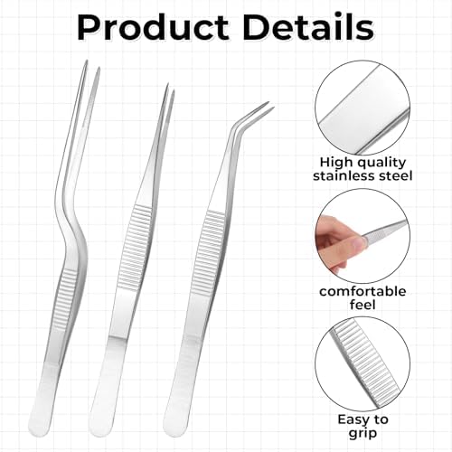 • 【Wide Application】Widely used, this tweezers set can be used for feeding small animals, cleaning the garden or fish tank, plant maintenance, plucking, cooking and crafting, making it a practical and versatile set of tools