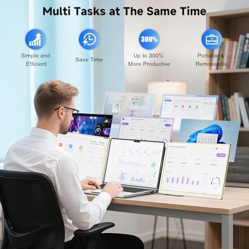 - ⚡️【Increase Efficiency Up to 300% & Save Time】: KEFEYA triple monitor for laptop screen extender supports you to open multiple tasks at the same time, work, video conference, watch movies, or play games on different screens by not having to switch back and forth on a single laptop screen continuously, increase your efficient by up to 300%. Perfect for people who work on the go, remote workers, watch a movie,IT professionals, Players, Stock traders, Programmers, game players, etc!