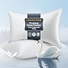 - Silky Smooth Comfort - Our pillows are encased in luxurious 600-thread-count cotton covers with an elegant satin stripe design, offering a smooth and soft touch. Certified by Oeko-Tex, the fabric is gentle on the skin and free of harmful chemicals. Inside, a feather-proof barrier prevents any feathers from poking through, keeping your pillow clean and comfortable. Experience a soft, silky feel for a restful night’s sleep with the best pillows for sleeping