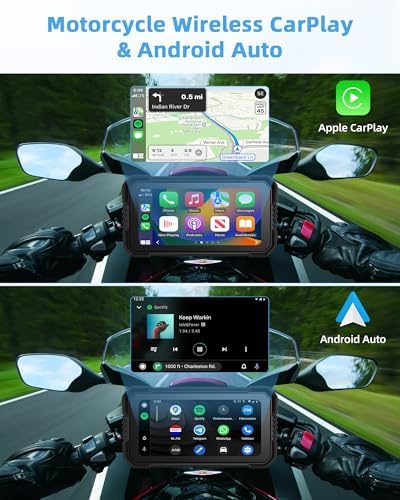 • 【Wireless CarPlay & Android Auto for Motorcycles】Portable motorcycle carplay screen features CarPlay / Android Auto. Connect your smartphone wirelessly to wireless motorcycle carplay screen via Bluetooth, and all of your phone's features are easily accessible through the smart touchscreen, as well as map navigation, phone calls, music playback, text messaging, and more with Siri or Google Assistant. With motorcycle carplay screen's hands-free controls, you can focus on the road and drive safely