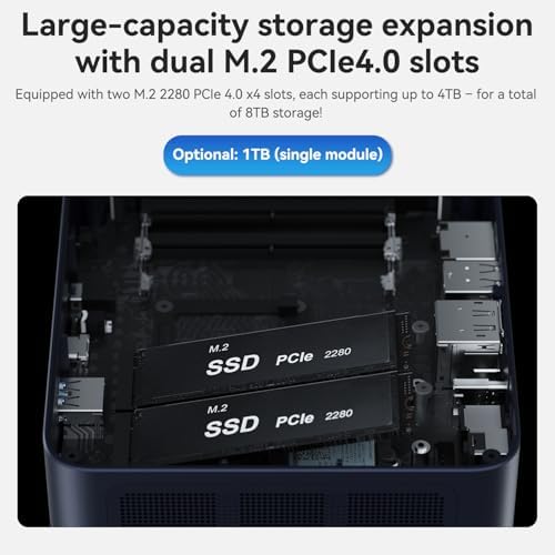 - ✅【32G DDR5 & 1TB PCIe4.0 SSD】 This 13900hk mini pc comes with 32G DDR5 (dual-channel, 2*16G, Max 48G*2). DDR5 5400MHz indicates a higher data transfer rate. 13900HK mini pc installed with 1TB PCIe4.0 SSD and the PCIE 4.0 is 2 times faster over PCIE 3.0. The dual M.2 2280 PCle 4.0 slots SSD of up to 4TB*2. Not only meets your high storage needs, but also significantly improves multitasking capabilities and data transfer rates