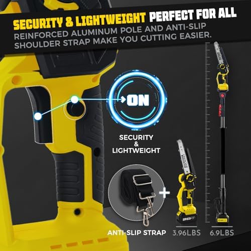 - 8 inch Cutting Surface - Boost Pruning Efficiency: 8-inch pole saw doubles the cutting area of a 4-inch saw and surpasses 6-inch saw by 33%. Easily tackle thicker branches with this cordless mini pole saw for precise cutting. Upgrade your pruning.